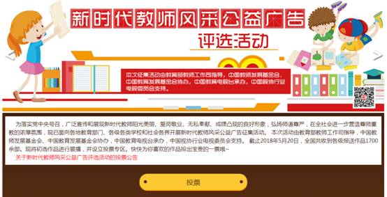 方式一:登录中国教育网络电视台www.cetv.cn:2018“新时代教师风采公益广告”专区;