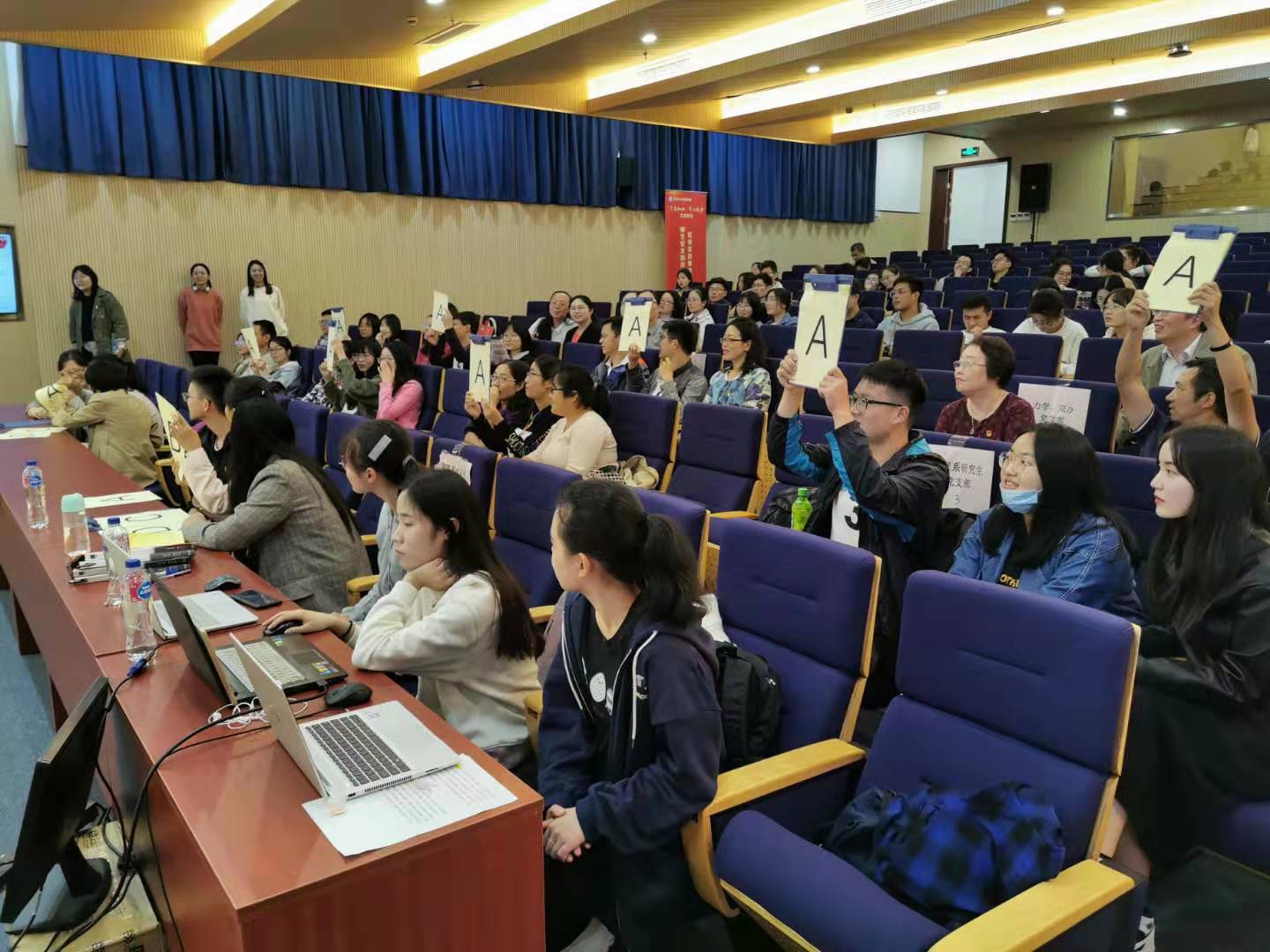 本次竞赛将“学习强国”平台内的的学习内容融入到竞赛中的必答题(选择题)、抢答题(填空题)和附加题三个环节,竞赛题目包含历史知识、中国共产党理论知识、古典诗词等各个方面。经过一番激烈角逐,最终,物理系研究生党支部夺得第一名。比赛现场还设置了观众抢答环节,工作人员准备了丰富的备选题与抢答题,供大家共同学习、交流。